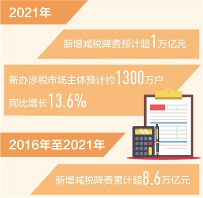 “2021年,稅務(wù)部門統(tǒng)籌推進(jìn)減稅降費(fèi)和組織收入,圓滿完成預(yù)算確定的收入任務(wù),更好激發(fā)市場主體活力、保障國家財(cái)力,全年新增減稅降費(fèi)預(yù)計(jì)超1萬億元?!眹叶悇?wù)總局主要負(fù)責(zé)同志在近日召開的全國稅務(wù)工作會議上表示,2016年至2021年新增減稅降費(fèi)累計(jì)超8.6萬億元,宏觀稅負(fù)由2012年的18.7%預(yù)計(jì)降至2021年的15.2%左右。2021年以來,減稅降費(fèi)政策繼續(xù)發(fā)力,助企減負(fù)紓困取得積極成效。