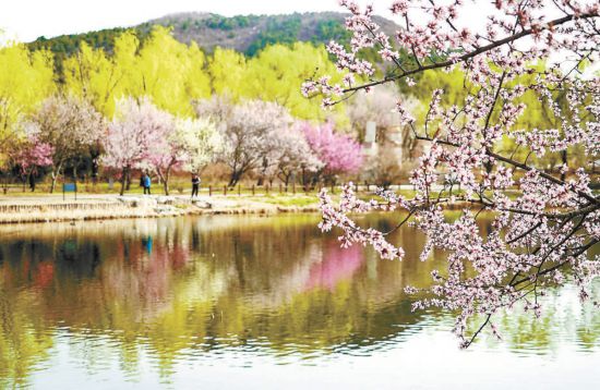 國家植物園呈現(xiàn)出一派遠(yuǎn)山近水、桃紅柳綠的春日佳景。本報記者 程功攝