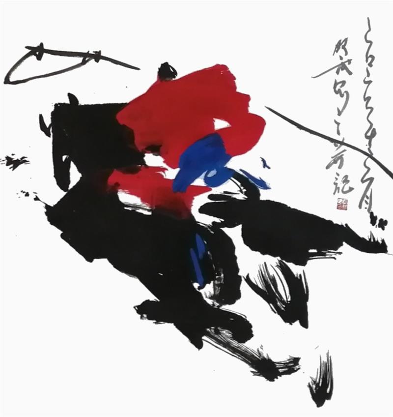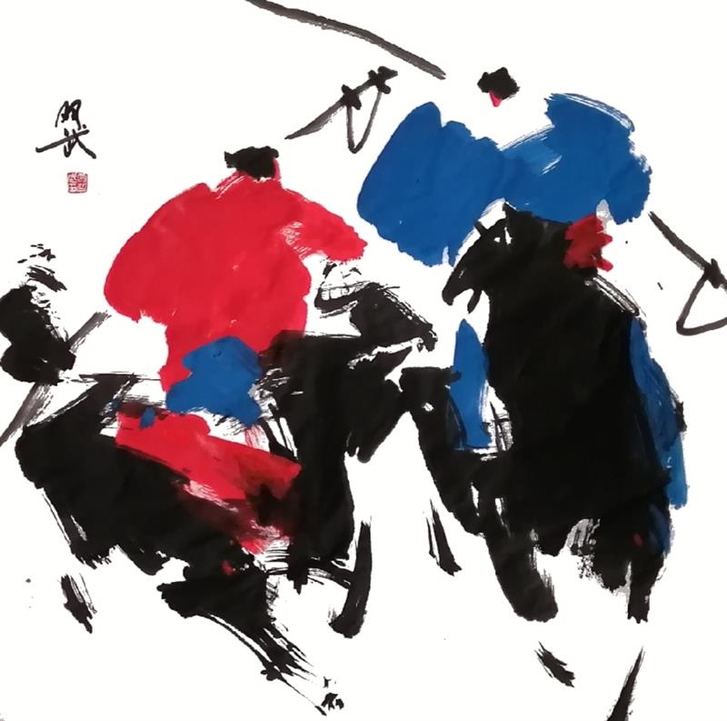 有這樣一位畫家,他的作品個(gè)性鮮明,有很強(qiáng)烈的時(shí)代感和現(xiàn)代藝術(shù)氣息。他涉獵題材廣泛,尢善畫馬、牛等物。他運(yùn)用焦墨,重墨刻畫物象,突出了表現(xiàn)對(duì)象的動(dòng)、勢(shì)、神。團(tuán)塊兒的組合、運(yùn)動(dòng)不僅是他造型的一大特點(diǎn),同時(shí)也給觀者很強(qiáng)的視覺沖擊力。有媒體稱他“大筆大墨大寫意”。他筆下的奔馬似有雷霆萬(wàn)鈞之勢(shì),他筆下的牛又恰有萬(wàn)夫不當(dāng)之勇。他的作品傳遞出去的永遠(yuǎn)是陽(yáng)剛,奮發(fā)向上,百折不撓之精神。他就是我國(guó)當(dāng)代青年大寫意畫家賈雙武。