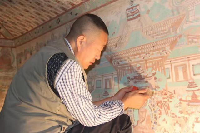 讓李曉洋最終留在這個(gè)行業(yè)的“決定性瞬間”發(fā)生在2014年,他和同事在莫高窟360窟開展壁畫修復(fù)。修復(fù)前,墻上的壁畫幾乎完全被浮塵遮蓋,損毀也很嚴(yán)重;修復(fù)后,壁畫變得清晰、線條十分明確。那一瞬間,他仿佛有穿梭千年的晃神,“這件事讓我很有成就感,覺得通過我們的努力,能夠讓更多人看到更精美的壁畫,值了?!?/span>