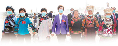 5月22日,第十三屆全國人民代表大會第三次會議開幕前,代表們攜手進(jìn)入會場。 |