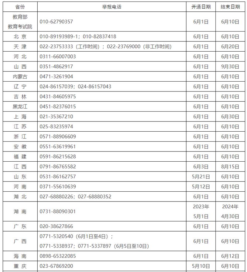 近日,教育部統(tǒng)一公布了教育部以及各?。▍^(qū)、市)2023年的高考舉報(bào)電話,歡迎廣大考生、家長(zhǎng)及社會(huì)各界人士及時(shí)舉報(bào)反映涉及2023年高考的問(wèn)題線索。教育部及各?。▍^(qū)、市)將會(huì)同有關(guān)部門根據(jù)舉報(bào)線索第一時(shí)間核查處理,堅(jiān)決維護(hù)高考公平公正。