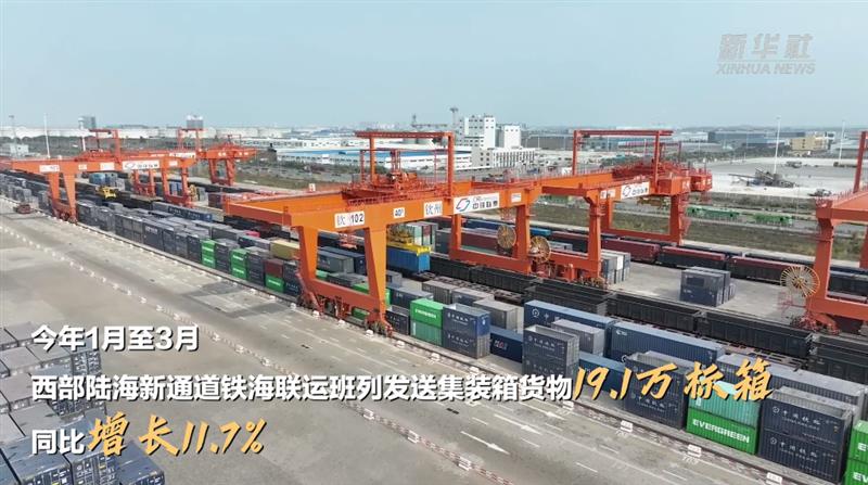 西部陸海新通道鐵海聯(lián)運(yùn)班列載著香蕉干、食用植物油、椰汁等東盟特色產(chǎn)品,向川渝地區(qū)疾馳而去。