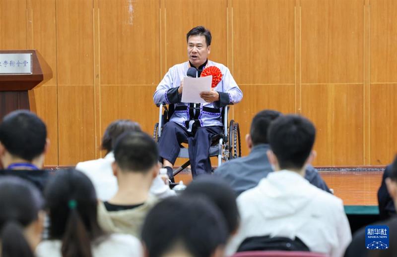 ??國際殘疾人職業(yè)技能競賽按摩項目冠軍王俊、江西省吉安市青原區(qū)新圩鎮(zhèn)新圩村衛(wèi)生所鄉(xiāng)村醫(yī)生陳桂平、巴黎殘奧會射箭冠軍陳敏儀、國際殘疾人職業(yè)技能競賽文本處理項目冠軍陳良杰、天津市肢殘人協(xié)會主席劉瀚文、重慶市公安局沙坪壩區(qū)分局紅巖派出所教導員何巧、天津市寶坻區(qū)殘疾人勞動服務(wù)所干部李代立等7名全國自強模范和全國殘疾人工作先進個人,在天津職業(yè)技術(shù)師范大學講述他們的故事。