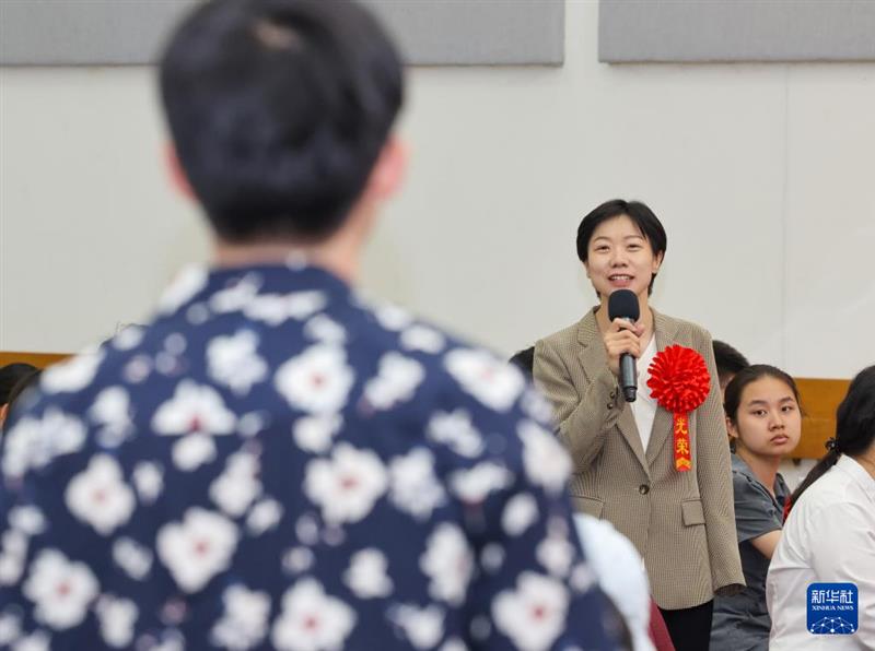 ??5月18日,山西大學政治與公共管理學院團委書記高思恩在現(xiàn)場與聽眾交流。新華社記者 殷剛 攝