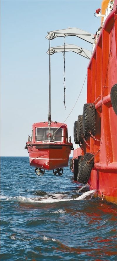 海洋工作船放下小艇,準(zhǔn)備進(jìn)行圍油欄作業(yè)。 |