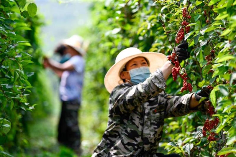 河北省唐山市豐潤區(qū)農(nóng)民正在采摘五味子。(唐山市豐潤區(qū)委宣傳部供圖)