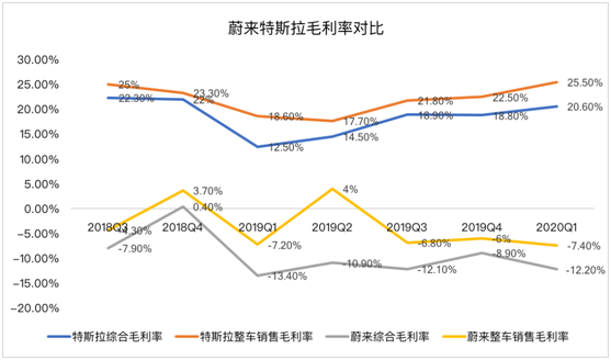 第三個(gè)要點(diǎn)就來(lái)談?wù)劽拾桑?季度綜合毛利率為負(fù)12.2%,相比之下,2019年第四季度為-8.9%,2019年同期為-13.4%。在解釋毛利率下滑的原因時(shí),蔚來(lái)表示主要是因?yàn)槌鍪鄣?ES6比例較高,但是ES6售價(jià)比ES8低。讓人沒(méi)想到是在這種情況下,李斌居然還在電話會(huì)中預(yù)計(jì)2季度毛利率達(dá)3%。