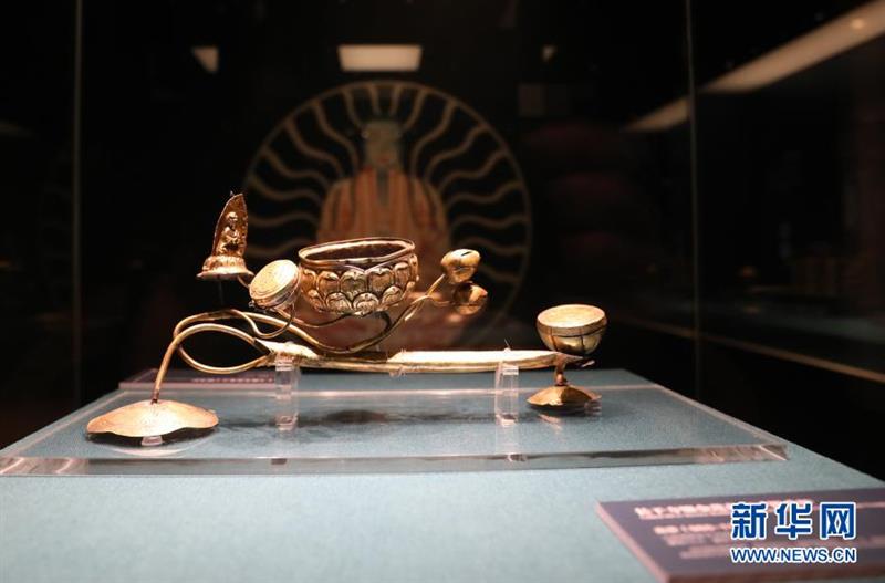 這是12月28日在航海文物展上拍攝的宋代鎏金蓮花寶子銀香爐。