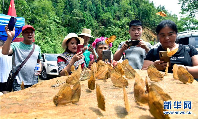 近期, 位于云南省紅河哈尼族彝族自治州的中國·紅河蝴蝶谷區(qū)域,箭環(huán)蝶幼蟲大量集中羽化,上億只蝴蝶環(huán)聚在山林和溪水邊,出現(xiàn)了十年來最大規(guī)模的“蝴蝶大爆發(fā)”,翩躚起舞的蝴蝶吸引了眾多游人前來觀賞、拍照。
