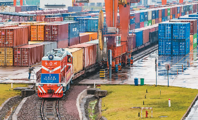 今年以來,中歐班列浙江金東平臺聯(lián)合鐵路、海關(guān)等部門,精準(zhǔn)服務(wù),搭建外貿(mào)綠色通道。圖為X9216/5次“杭叉號”中歐班列從浙江金華南站啟程,經(jīng)霍爾果斯出境,駛向哈薩克斯坦的梅杰烏。胡肖飛攝(人民視覺)