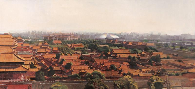 毛以崗 古典與現(xiàn)代——遠(yuǎn)眺國(guó)家大劇院 布面油畫 50cmx120cm 2008