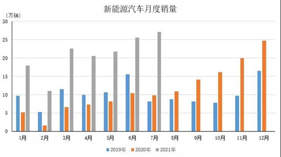 統(tǒng)計數(shù)據(jù)顯示,今年7月,新能源汽車產(chǎn)銷分別達到28.4萬輛和27.1萬輛,市場呈現(xiàn)出“淡季不淡”的特點,產(chǎn)銷環(huán)比和同比繼續(xù)保持增長,且雙雙創(chuàng)歷史新高??紤]到通常下半年才是新能源汽車銷售的旺季,2021年新能源汽車銷量有極大的概率超出市場預(yù)期。