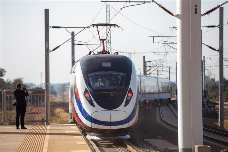 2021年12月3日,“瀾滄號(hào)”動(dòng)車組列車駛離老撾萬(wàn)象站。當(dāng)日,中老鐵路全線開通運(yùn)營(yíng)。(新華社發(fā),凱喬 攝)