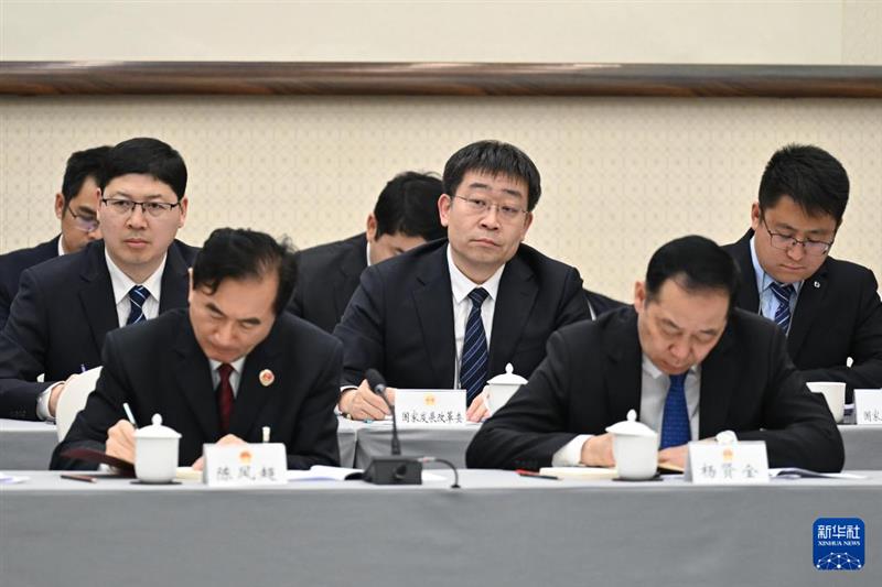 ??3月5日,國家發(fā)展改革委派員(中)在十四屆全國人大二次會議天津代表團(tuán)全體會議上現(xiàn)場旁聽記錄。新華社記者 李鑫 攝