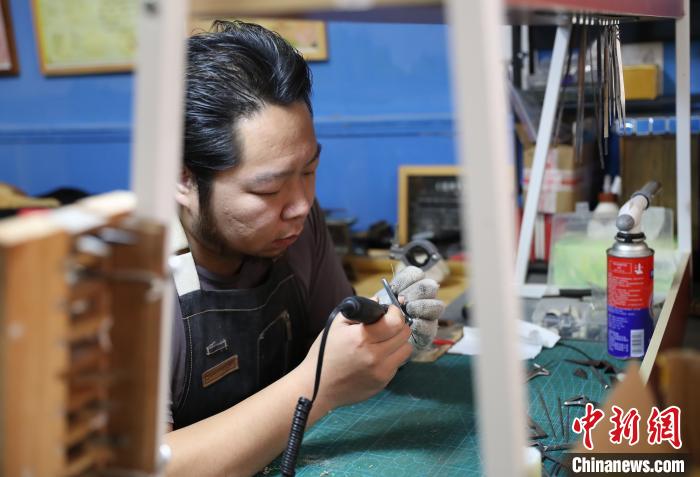 李旭正在為金屬材質(zhì)口弦拋光。 于晶 攝
