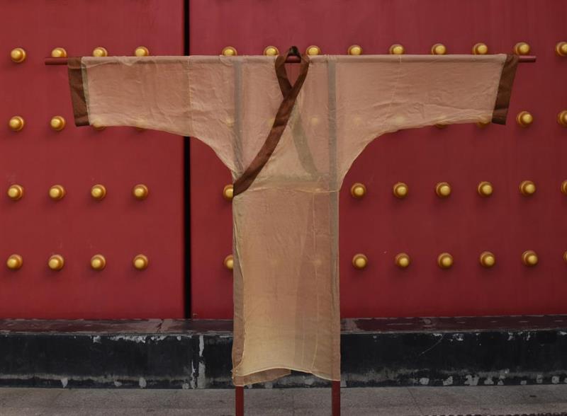 但現(xiàn)在大多數(shù)學(xué)者認(rèn)為,素紗單衣應(yīng)該是穿在綿袍之外,而且是在比較重要的場合才會穿著。