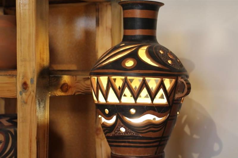 馬黑麥制作的彩陶燈。新華社記者馬莎攝