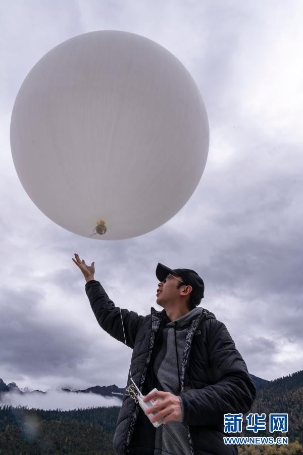 2019年10月21日,隨著探空氣球成功施放并進入萬米高空收集大氣垂直數(shù)據(jù),第二次青藏科考“地氣相互作用及其氣候效應(yīng)”觀測試驗第三階段在西藏林芝啟動。新華社記者 孫非 攝