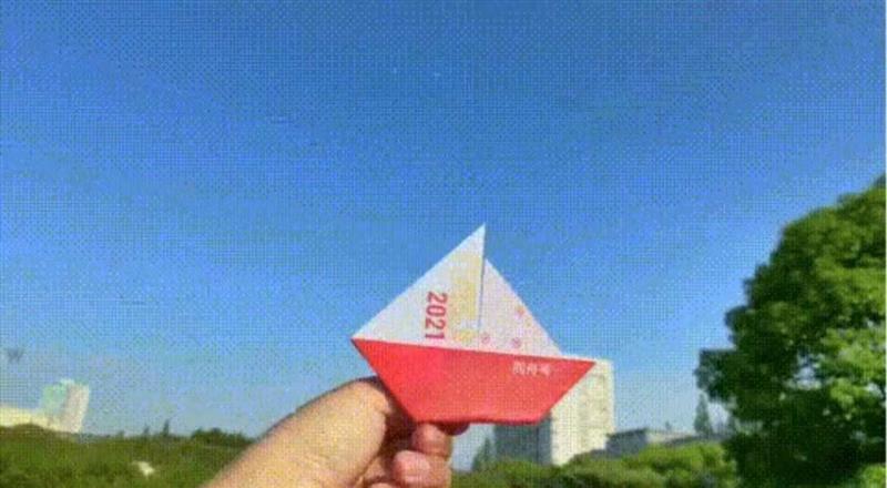 打開寶盒的封面是一枚同濟大學(xué)的校標,也可以用作冰箱貼,取下校標后還藏著一份“造船指南”。根據(jù)“指南”的指示可將紙折成一艘船,“同舟號”“共濟號”“夢想號”意為托起夢想的風(fēng)帆。