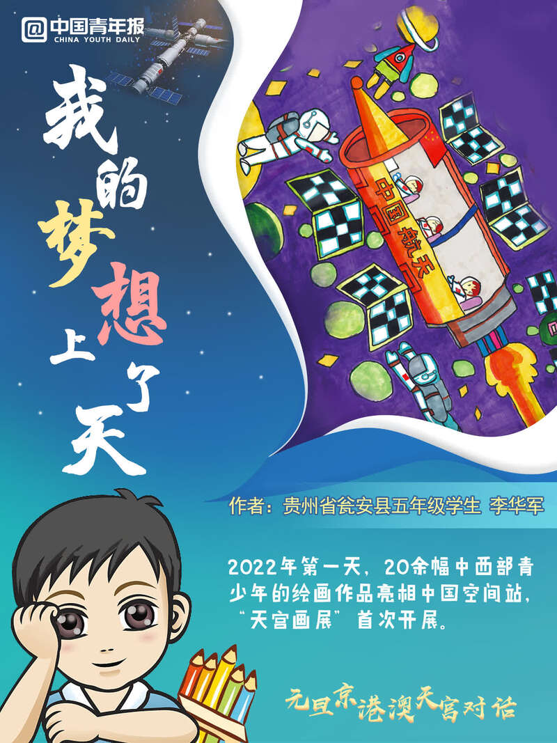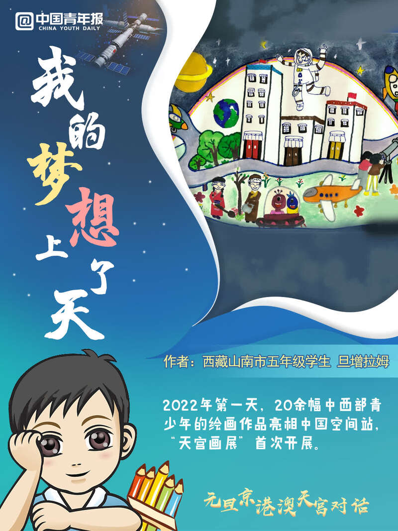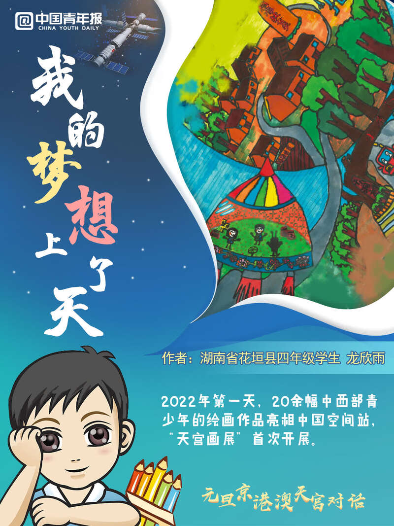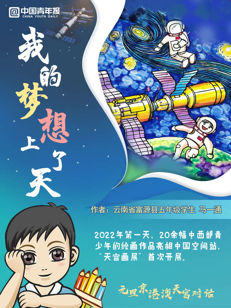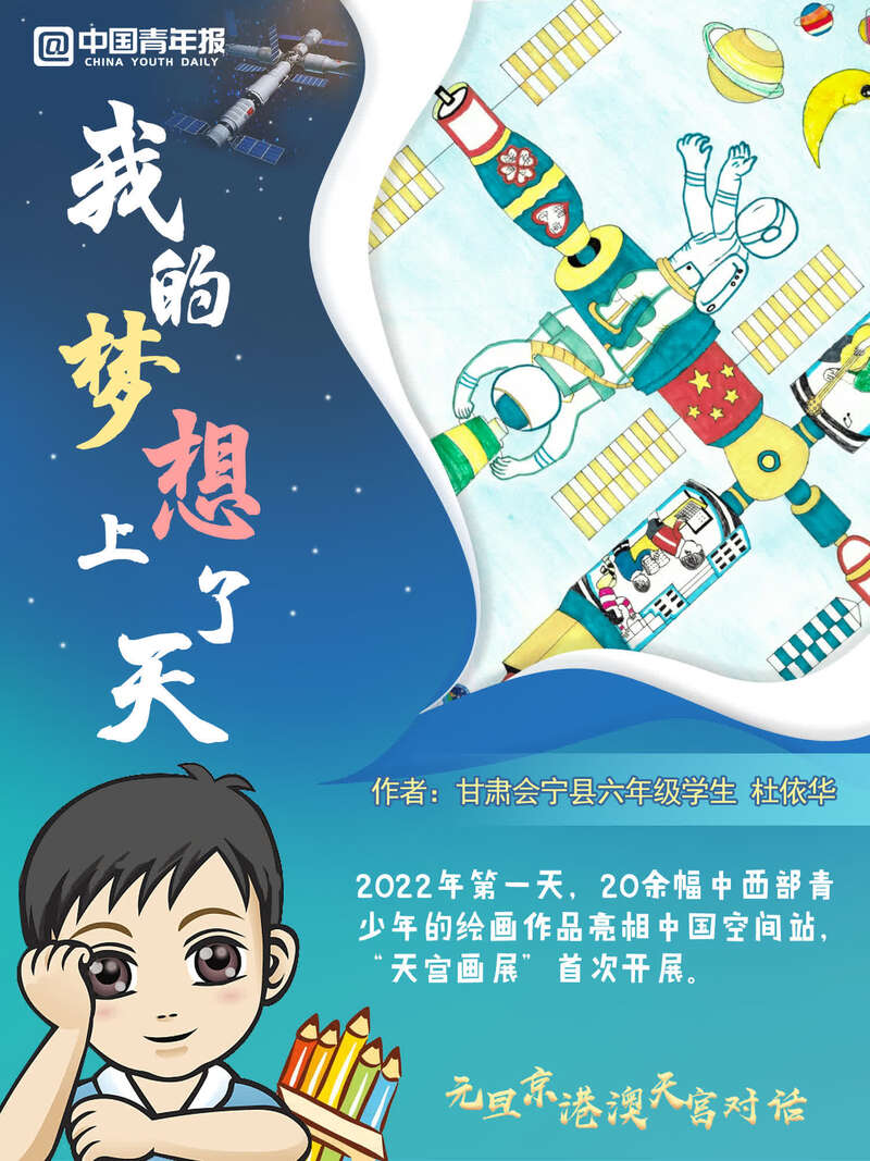 中國青年報(bào)客戶端訊(中青報(bào)·中青網(wǎng)記者 邱晨輝 張敏 美編 馬群)新年第一天,天宮畫展亮相中國空間站,神舟十三號(hào)航天員乘組在“元旦京港澳天宮對(duì)話”活動(dòng)期間,進(jìn)行了現(xiàn)場(chǎng)展示和介紹。這是在中國空間站舉辦的第一場(chǎng)天宮畫展,共有20余幅中西部地區(qū)青少年創(chuàng)作的太空主題繪畫作品亮相中國“天宮”。