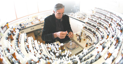 法國一名專業(yè)調(diào)香師在配制香水。 |