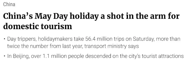 《南華早報(bào)》在報(bào)道中國五一假期時(shí),就將“強(qiáng)心針”用在標(biāo)題里。
