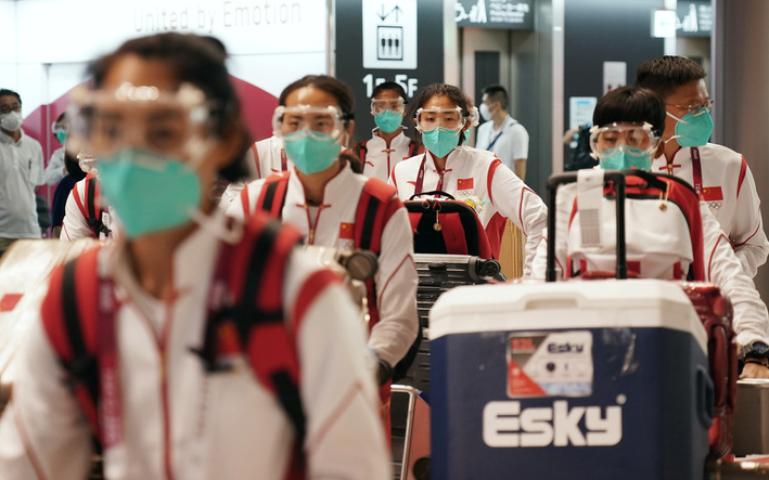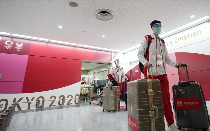 “帥”旗手就位、眾將輕松“過關(guān)” 中國代表團部分成員抵達東京