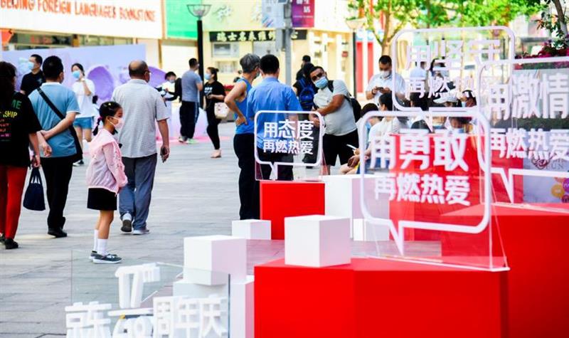 如果覺(jué)得只玩線上不夠嗨也不要緊,大家還可以去線下體驗(yàn)京東與王府井聯(lián)合打造的“萬(wàn)物復(fù)蘇 重燃熱愛(ài)”主題活動(dòng)?,F(xiàn)在的王府井大街已經(jīng)披上了“京東紅”,街道兩旁布滿了以“熱愛(ài)”為主題的系列展覽,包括熱愛(ài)故事展、熱愛(ài)藝術(shù)展、熱愛(ài)互動(dòng)裝置等,主要展示疫情期間、疫情后社會(huì)各界關(guān)于熱愛(ài)與堅(jiān)持的動(dòng)人事跡。