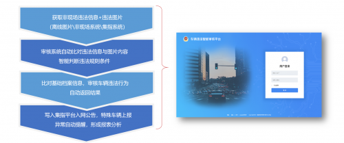 同時(shí),“車輛非現(xiàn)場(chǎng)違法智能審核系統(tǒng)”支持7*24小時(shí)全天候智能審核,有效地避免了人工視覺(jué)疲勞、工作時(shí)長(zhǎng)、審核標(biāo)準(zhǔn)不統(tǒng)一等的不良影響,實(shí)時(shí)分揀車輛違法智能審核結(jié)果,生成智能大數(shù)據(jù)報(bào)表,有效地縮短了交警處理違法案件的周期,運(yùn)用科學(xué)技術(shù)實(shí)現(xiàn)智能監(jiān)管,解放了警力,從而從源頭上減少交管部門(mén)對(duì)車輛違法審核的人力投入。