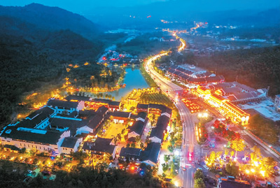 浙江湖州長興縣水口鄉(xiāng)茶文化景區(qū)燈光璀璨,夜經(jīng)濟紅火。 |
