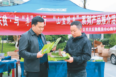 日前,貴州省遵義市匯川區(qū)山盆鎮(zhèn)黨委攜手匯川區(qū)機關(guān)后勤服務(wù)中心開展“消費扶貧”推介活動,將“山盆脆李”系列產(chǎn)品推向市場,果干、果酒的單日銷售額達一點四萬元。周 麗攝(人民視覺)