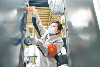 安徽合肥海爾工業(yè)園內(nèi),來自安徽世紀金源大飯店的共享員工在海爾冰箱生產(chǎn)線上工作。 |