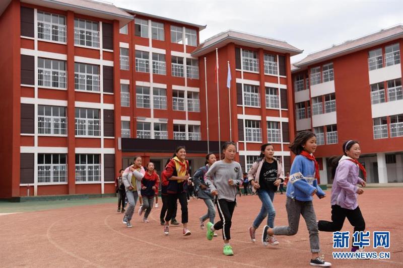 四川省布拖縣阿布澤魯小學(xué)的學(xué)生們在新操場上跑步(6月22日攝)。新華社記者 胥冰潔 攝