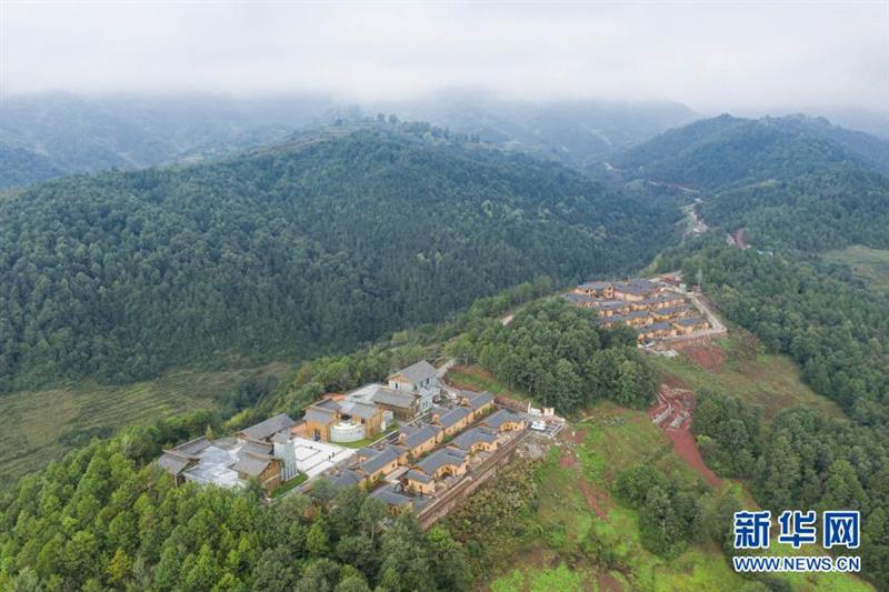 這是8月11日在四川省涼山彝族自治州昭覺縣拍攝的昭美社區(qū)和社區(qū)內(nèi)的幼兒園(無人機照片)。新華社記者 劉坤 攝
