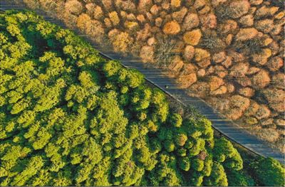 日前拍攝于重慶南川區(qū)山王坪鎮(zhèn)的美麗景色。這里曾是石漠化區(qū)域,40年來,當(dāng)?shù)毓苍苑N8000余畝水杉和柳杉,將森林覆蓋率提高到95.5%。 |
