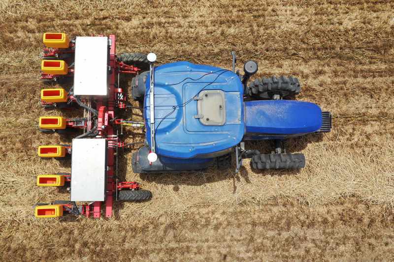 在河南省鄧州市小楊營鎮(zhèn)安眾村,加裝有北斗導航系統(tǒng)的拖拉機在無人駕駛狀態(tài)下播種(2020年5月26日攝,無人機照片)?!⌒氯A社記者 馮大鵬 攝