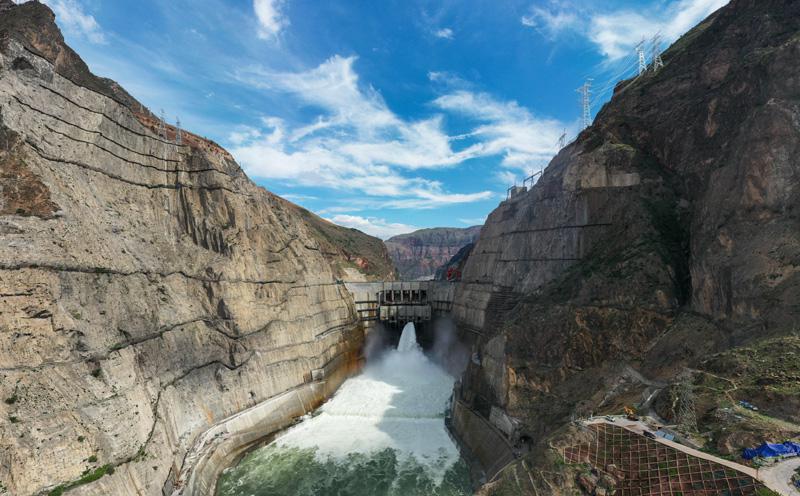 烏東德水電站大壩(2020年6月29日攝,無人機照片)。世界第七、中國第四大水電站——烏東德水電站首批機組于6月29日投產(chǎn)發(fā)電。新華社記者 胡超 攝