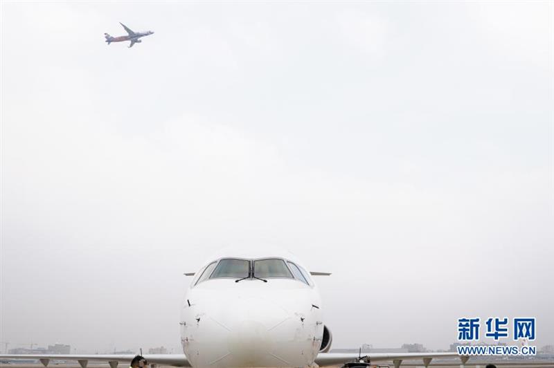 12月28日,執(zhí)飛一二三航空首航航班的國(guó)產(chǎn)飛機(jī)ARJ21前往指定區(qū)域,準(zhǔn)備起飛。新華社記者 丁汀 攝