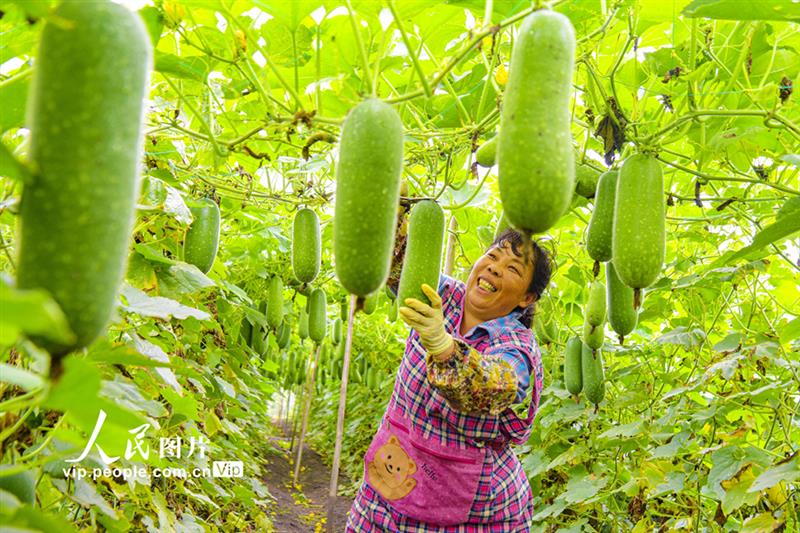 2021年4月19日,廣西壯族自治區(qū)北海市合浦縣廉州鎮(zhèn)楊家山村村民在地里采摘豐收的毛節(jié)瓜上市。林啟波攝(人民圖片網)