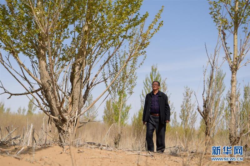 過去,他家周圍沒有樹,來襲的風沙最近距房子僅20米。他與老伴決心靠種樹保住家園。