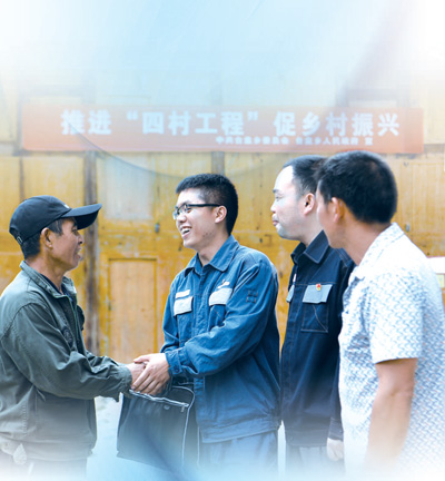 日前,貴州省黔東南苗族侗族自治州臺江縣臺盤鄉(xiāng)紅光村,原駐村第一書記李根(右二),帶領(lǐng)新選派駐村第一書記潘光強(左二)同村民們認識。 |
