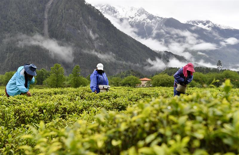 西藏易貢茶場工人在采摘茶葉(5月22日攝)。新華社記者 張汝鋒 攝