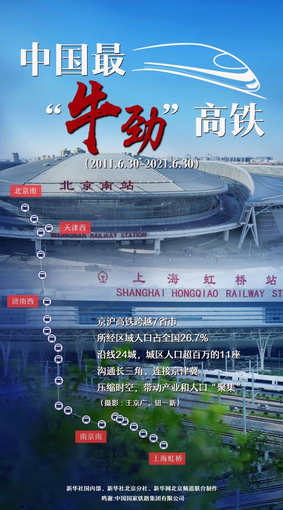 新華社北京6月30日電(記者樊曦、丁靜)30日,京滬高鐵迎來運營10周年。10年間,京滬高鐵在中國高鐵發(fā)展史上創(chuàng)造多項成績,飛馳出一道亮麗軌跡。