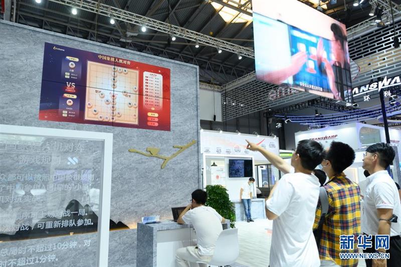 7月7日,在世界人工智能大會(huì)體驗(yàn)日,觀眾在觀看中國(guó)象棋人機(jī)對(duì)弈。
