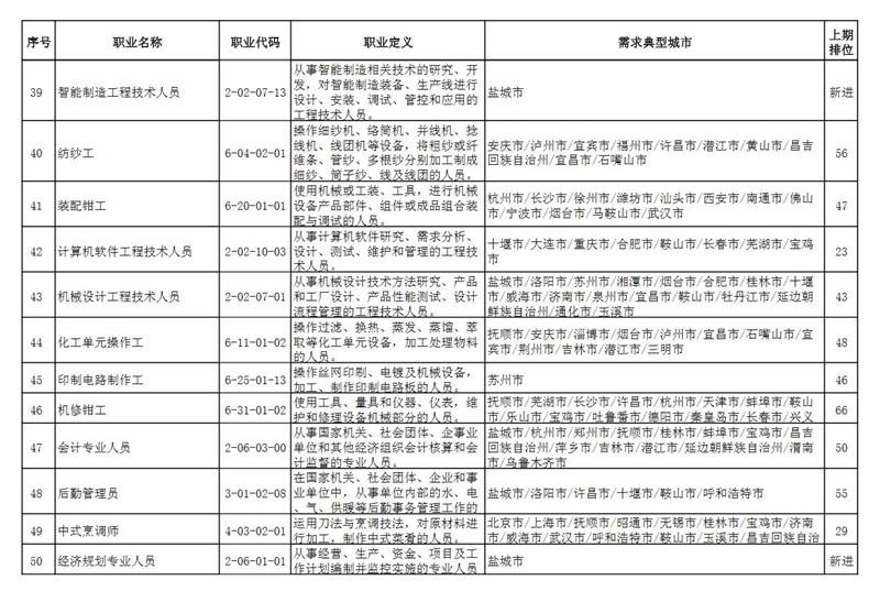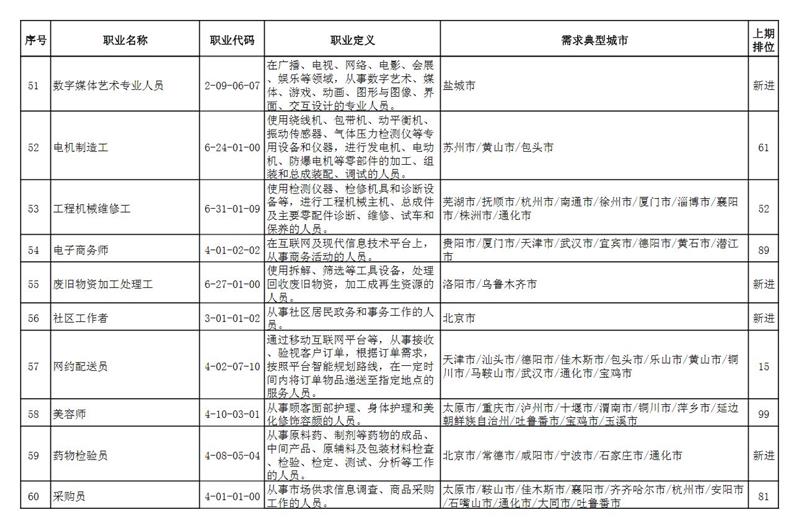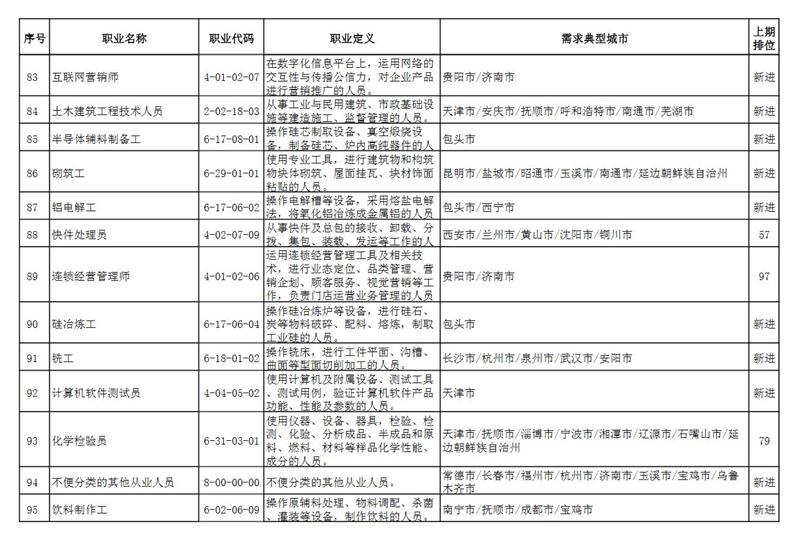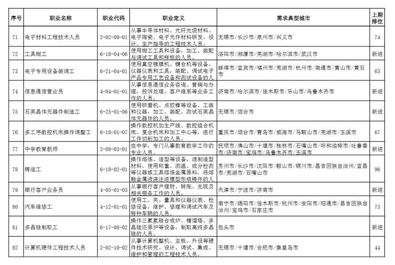 人社部指出,與2021年第一季度相比,本期“排行”有以下特點: