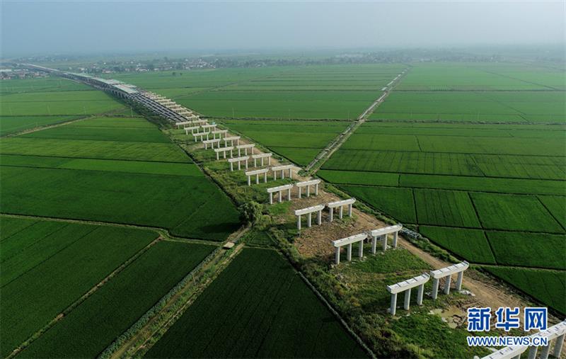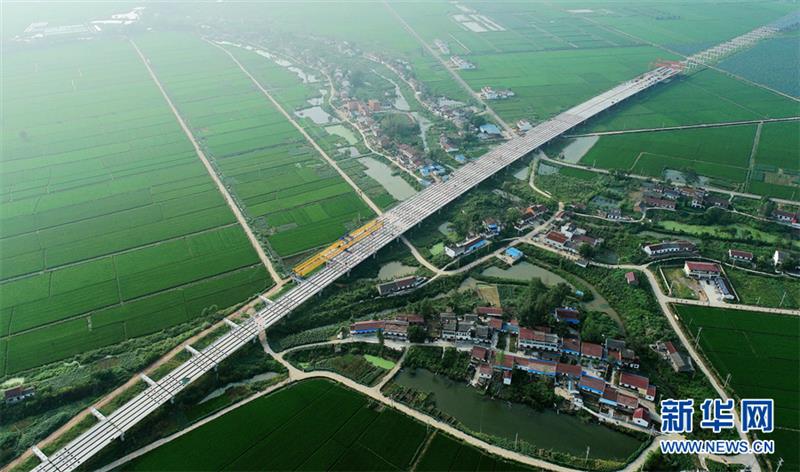 8月28日,航拍徽州大道南延工程廬江縣石頭鎮(zhèn)境內(nèi)施工現(xiàn)場。