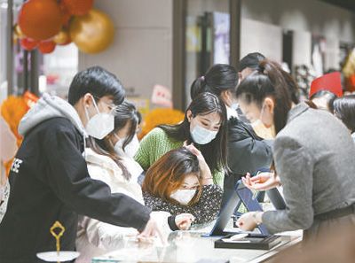 1月1日,消費(fèi)者在天津金茂匯商場(chǎng)內(nèi)選購(gòu)商品。新華社記者 孫凡越攝
