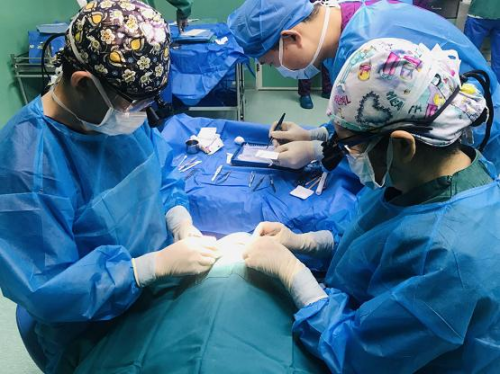 (正在由楊教授與王教授實(shí)施手術(shù)的拍組拉)