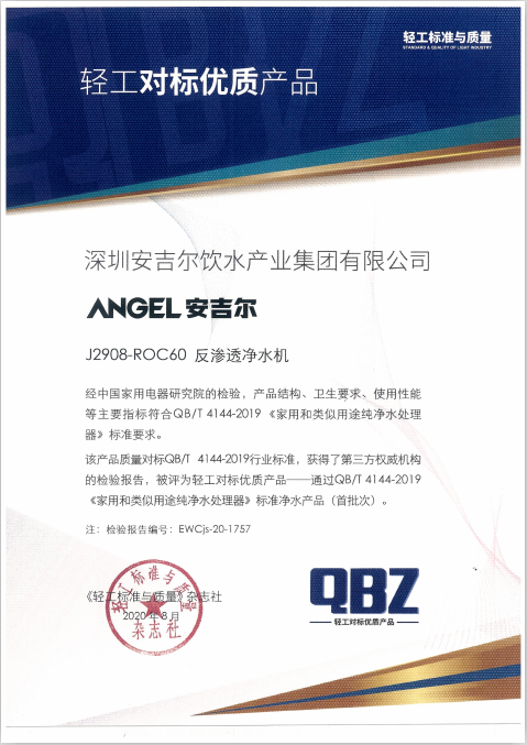 近日,經中國家用電器研究院的檢測,安吉爾熱銷新品A7 lite大水量凈水器在產品結構、衛(wèi)生要求、使用性能、電器安全、環(huán)保要求等方面主要指標均符合QB/T 4144-2019《家用和類似用途純凈水處理器》行業(yè)標準,獲得了第三方權威機構的檢驗報告,被評為首批次輕工對標優(yōu)質產品。這不僅是對被測產品質量的認可,更是對安吉爾行業(yè)實力的再次印證。